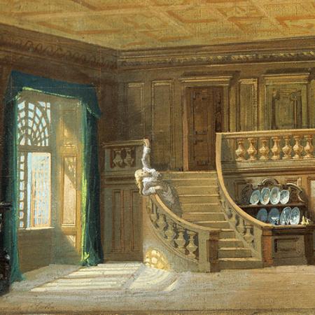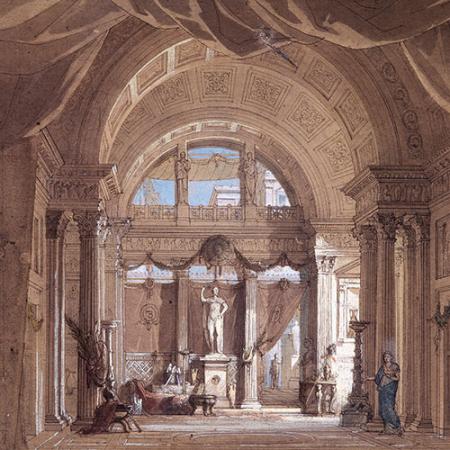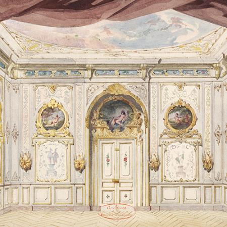 La bibliothèque-musée de la Comédie-Française conserve 160 maquettes planes de décors de la période romantique (1820-1880). Ces maquettes représentent la première étape de la création d’un décor de scène, avant l’élaboration de maquettes en volume servant à la construction.
