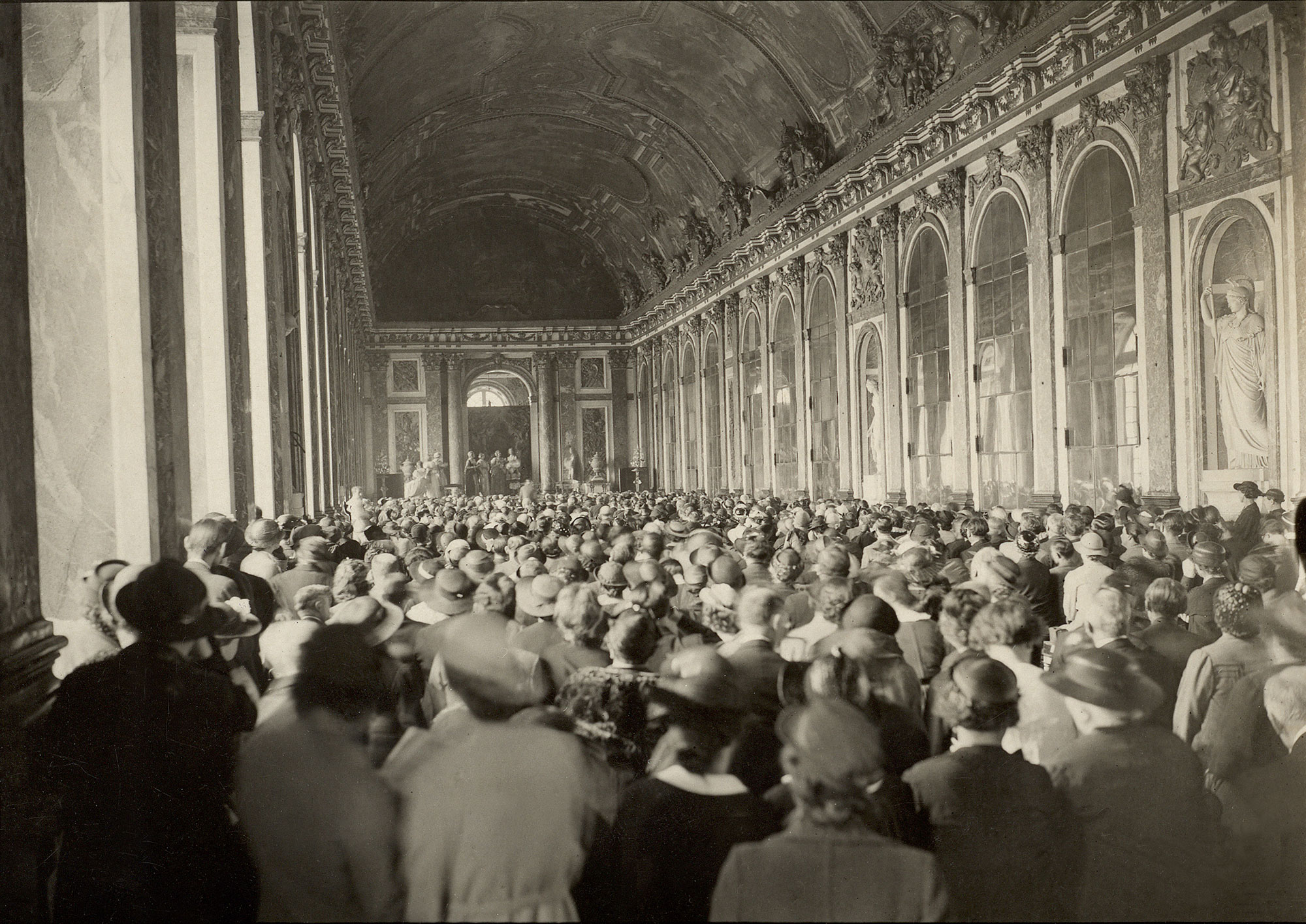 Théâtre aux armées : acteurs en scène devant le grand Hôtel de Leysin en Suisse, août 1916