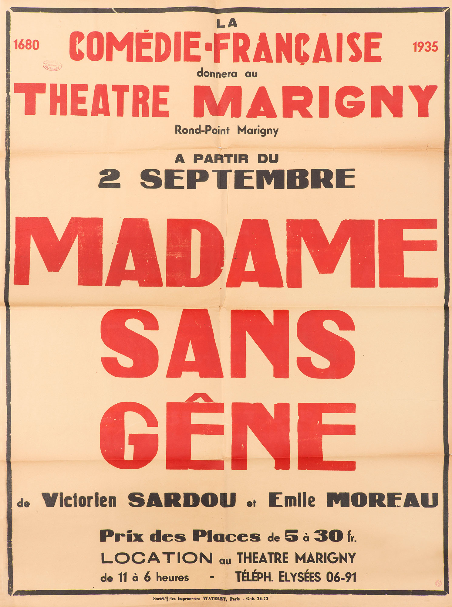 Fermée pour travaux, la Comédie-Française loue le Théâtre Marigny à Léon Volterra du 1er août au 29 octobre 1935. Le Théâtre Marigny...