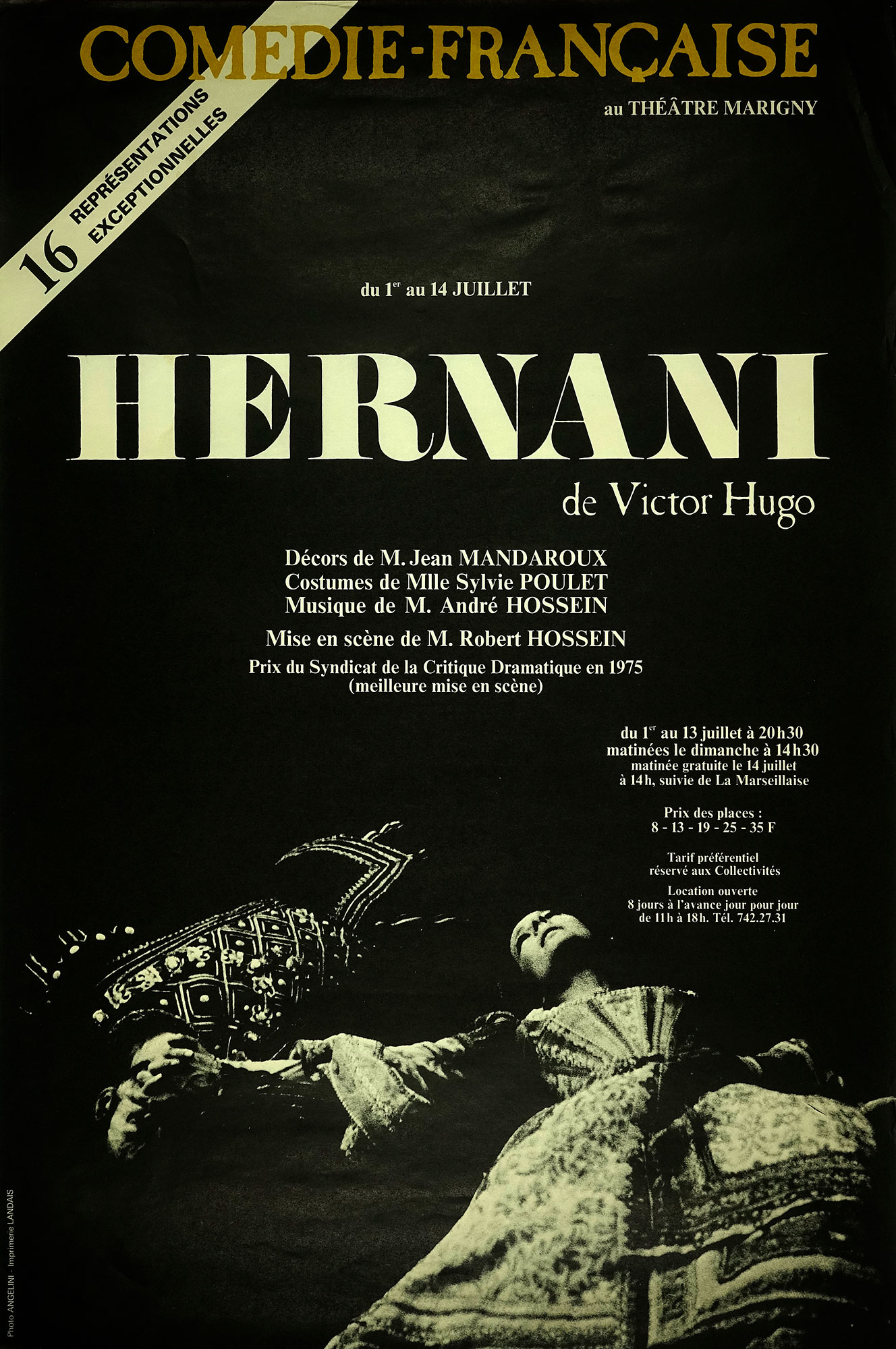 Affiche de « Hernani » de Victor Hugo, mise en scène de Robert Hossein, Théâtre Marigny, 1974