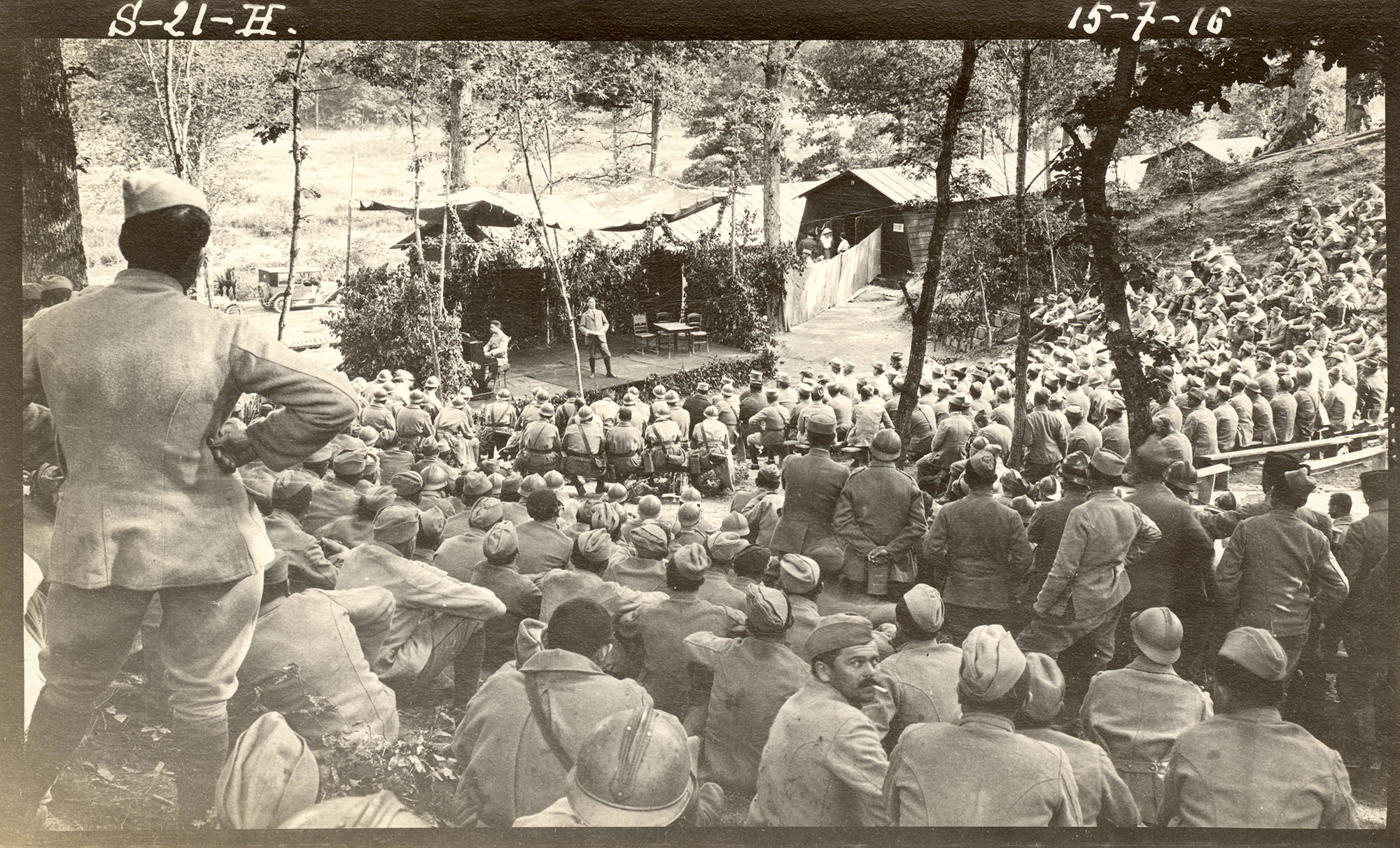 Théâtre aux armées : vue du public et de la scène, Camp du Sounia, 15 juillet 1916